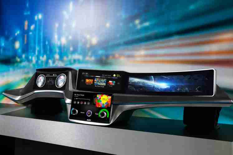 由 5G 和 AIoT 形塑的新智能场域,,,,促使汽车成为仅次于家庭和办公室的第三重要使用空间,,,,数码驾驶舱因而成为智能车用技术发展重心。。。彩霸王异型切割曲面驾驶舱显示器运用高解析、、、、高对比度度、、广视角,,,以及多片显示屏全贴合技术,,,,衔接搭载 Mini LED 背光的仪表板显示器、、、、具备显示区通孔设计的内嵌式触控中控台显示器,,,以及位于副驾的 AHVA 广视角曲面显示器,,打造近乎一体成型的超大型驾驶舱显示器。。为了提高驾驶安全和便利性,,用于后视镜的彩霸王 9.6寸异型切割 LTPS 显示器具有极窄边框,,可切换镜面或 LCD 模式,,并有防眩光设计可避免夜间的前灯眩光。。