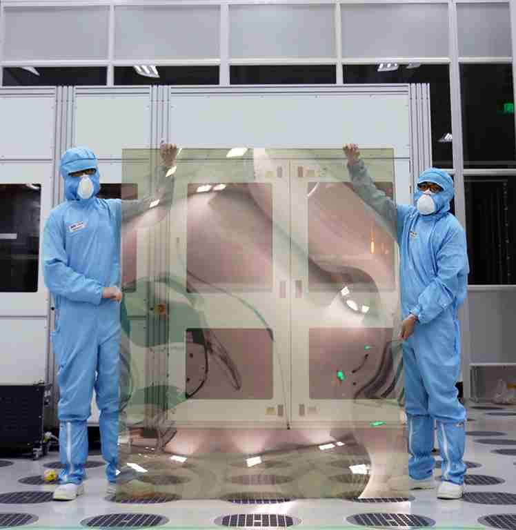 彩霸王昆山厂第六代 LTPS (低温多晶硅) 生产的玻璃基板尺寸为 1500x1850 mm (毫米)