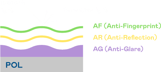 A.R.T.彩霸王光电发展出独家的表面处理跟多层镀膜技术,,让外部光线照射到显示器表面时所产生的反射光大幅降低。。。。 |